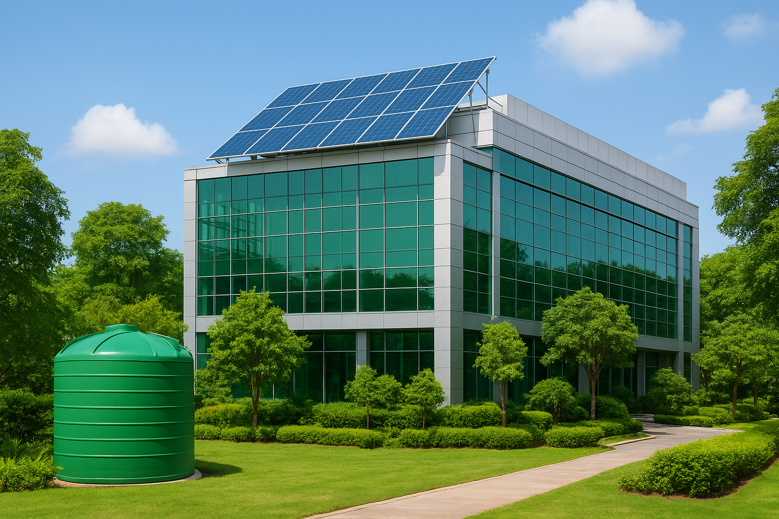 2. ওয়াটার ম্যানেজমেন্ট (Water Management) – বৃষ্টির পানি সংরক্ষণ, পুনঃব্যবহার, এবং অপচয় রোধ।